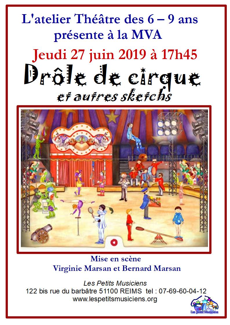 Tarif : 6 € adultes et enfants à partir de 6 ans . Le spectacle Cirque en scène aura lieu à l’auditorium de la résidence Paindavoine situé au 1 rue du lieutenant Herduin à Reims . Réservations au 07 69 60 04 12 ou par mail les-petits-musiciens@orange.fr