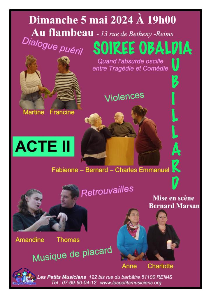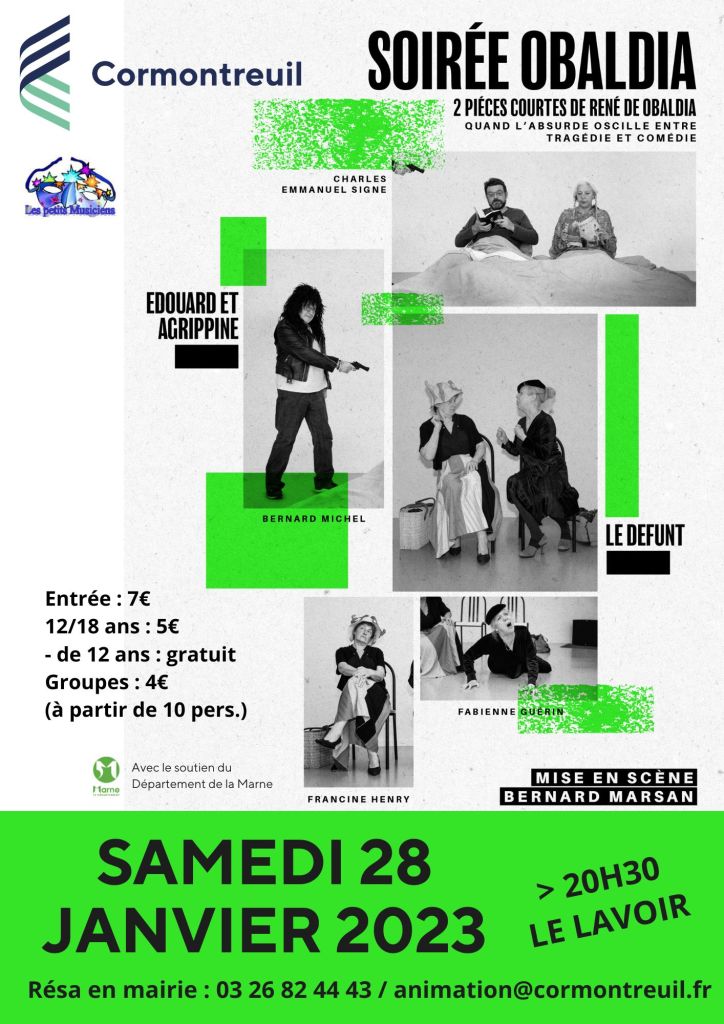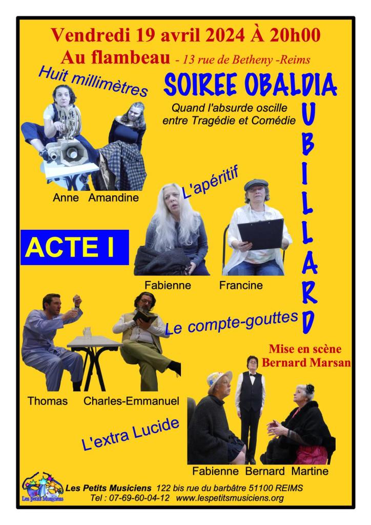 L’atelier théâtre adultes présente : Une soirée Obaldia à l’auditorium Paindavoine à Reims