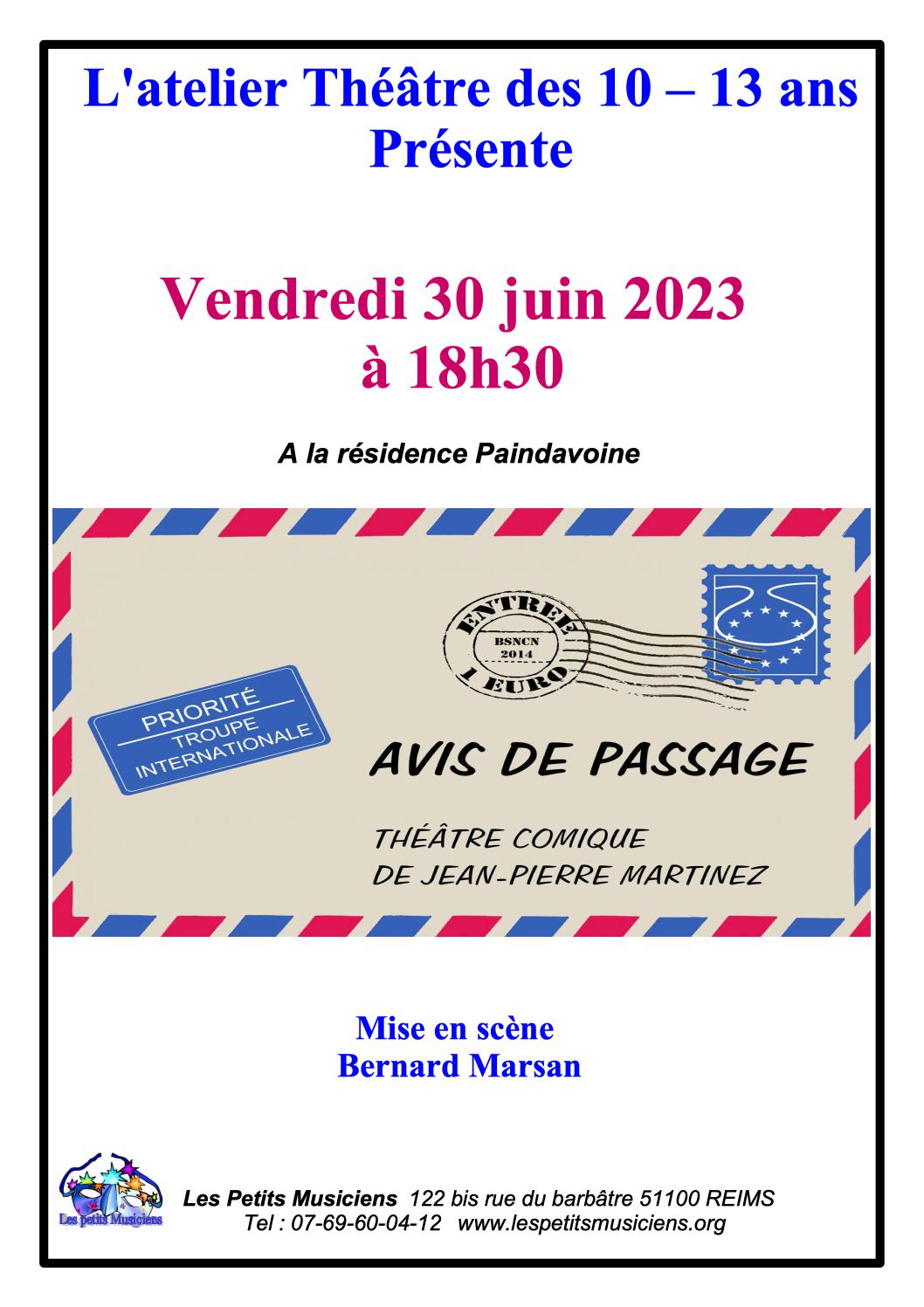 Représentations le 30 juin à la Résidence Paindavoine située au 1 rue du Colonel Oudin 51100 REIMS